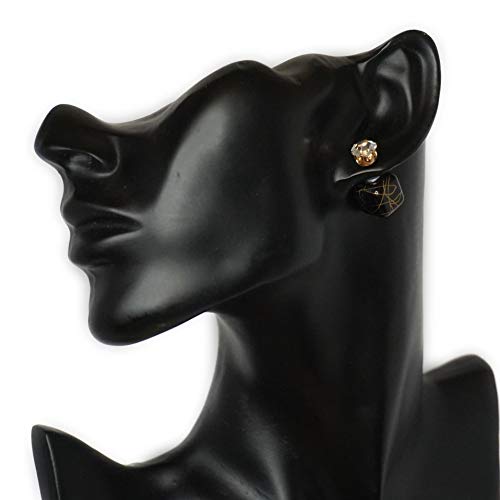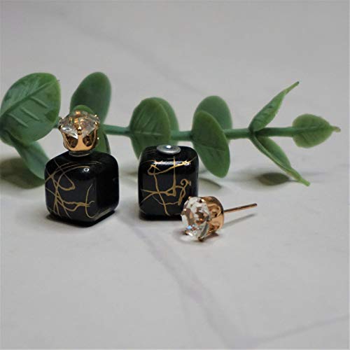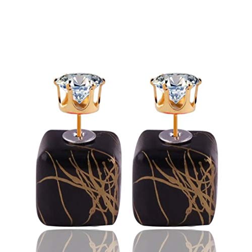LeahMaria - Orecchini a doppia perla a forma di cubo, con motivo a sfera, 2 pezzi e Acciaio inossidabile, colore: Nero, cod. LM-007