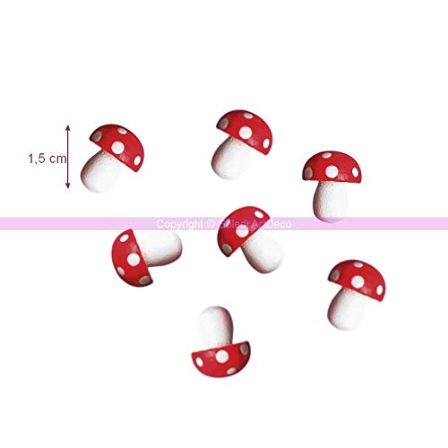 Lealoo - 24 piccoli funghi in legno dipinto, 1,5 cm, da spargere o incollare, per lo scrap, le manite, le mosche