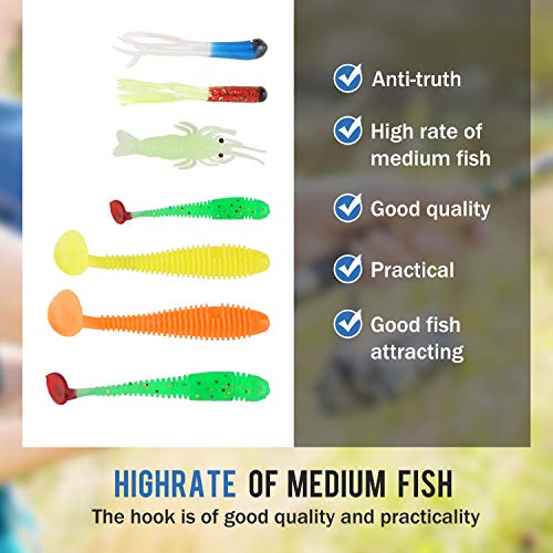 Realizzato in materiale di alta qualità, morbido, resistente e rispettoso dell'ambiente. Legate a mano da professionisti con ganci affilati in acciaio al carbonio, una volta che il pesce mordere l'esca, è difficile sfuggir.