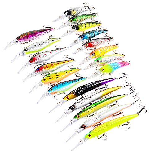19 Pezzi ideale per pesci d'acqua dolce e salata, per persico, trota, salmone, walleye e molto altro ancora. Ottimo per pesci predatori, come bassi, lucci, glaucomi, trote, salmoni ecc.