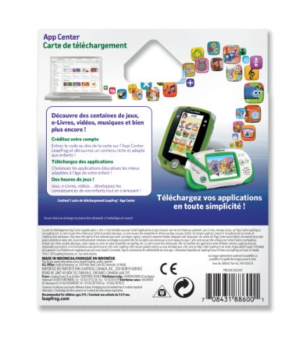 Descrizione prodotto: con la scheda di download app Center LeapFrog, créditez tuo account LeapFrog di un valore di 20 € per scaricare molte applicazioni come dei e-livres, giochi, video e musica.