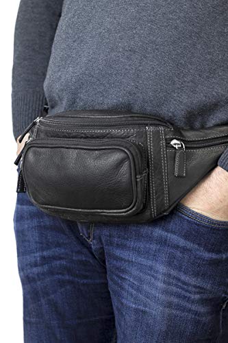 LEAS Buffalo Marsupio, Borsetta a Tracolla, Vera Pelle, Nero Travel-Line''