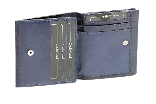 LEAS Portafoglio Piccolo Boxed Style e anti RFID/NFC Tecnologia Blocco, Vera Pelle, blu Special Edition''