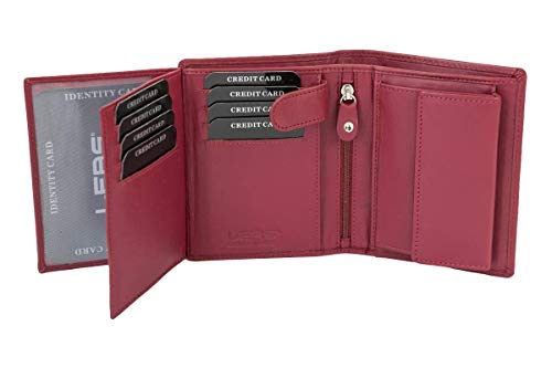 LEAS RFID Portafoglio Boxed Style con 3 Scomparti per Banconote con Ampio Scomparto XXL per Piccoli cambiamenti Anti NFC Tecnologia Blocco de Vera Pelle, Rosso