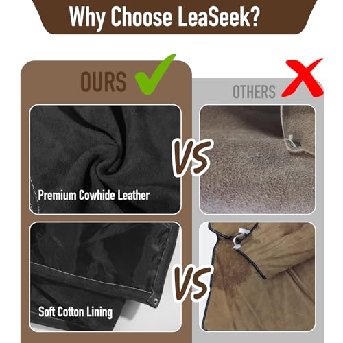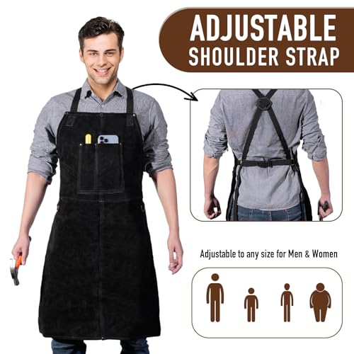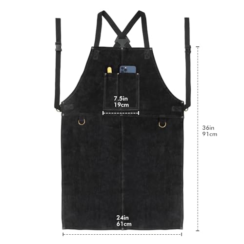 LeaSeek Grembiule per saldatura in pelle: resistente al calore e ignifugo, ignifugo, grembiule per barbecue resistente, taglia unica regolabile, Nero 61x91, 61 x 91cm