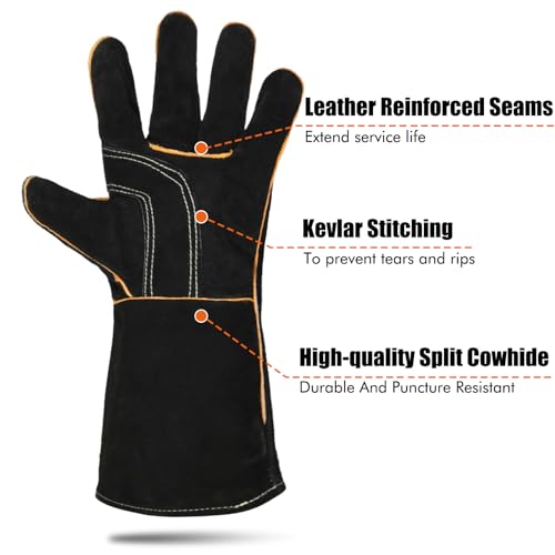 Protezione resistente al calore: in pelle resistente di alta qualità e filo Kevlar resistente al calore proteggono le mani anche nelle condizioni più estreme. Eccellenti prestazioni in saldature pesanti, presa di cose calde come stufe e pentole e legna da ardere.