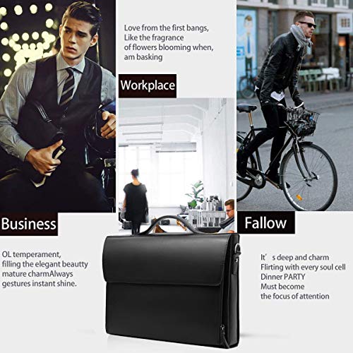 Leathario Borsa a Mano in Pelle Vera da Uomo per Lavoro Valigetta a Spalla Ventiquattrore Cartella per Ufficio Universita' PC Portatile 14/15.6 Pollici Nero