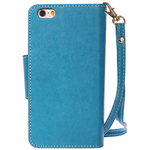 Leather Case Cover Custodia per iPhone 6 6S (4,7 Zoll), Ecoway Caso / copertura / telefono 3D Donna e gatto di disegno in rilievo dipinto di progettazione Folio PU a libro con 9 tasche di carta PU Custodia in pelle Portafoglio con a Bookstyle tasche carte di credito funzione con interno morbido in TPU Portafoglio Supporto Slot Schede Protettiva Bumper Caso - Blue