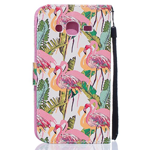 Leather Case Cover Custodia per Samsung Galaxy J3, Ecoway Caso / copertura / telefono modello di colore disegno in dipinto di progettazione Folio PU a libro con carta PU Custodia in pelle Portafoglio con a Bookstyle tasche carte di credito funzione con interno morbido in TPU Portafoglio Supporto Slot Schede Protettiva Bumper Caso - fenicotteri