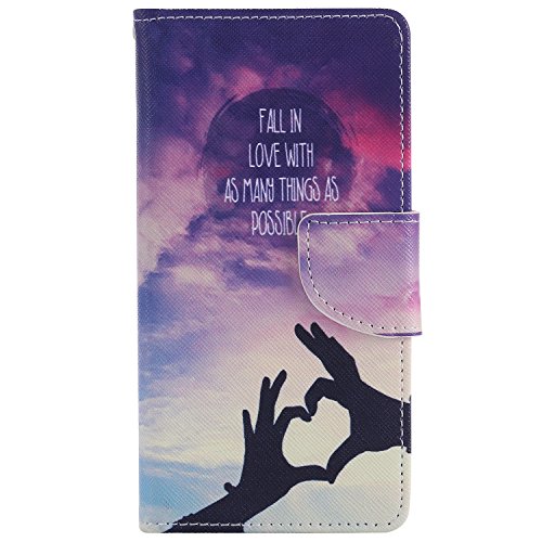 Leather Case Cover Custodia per Samsung Galaxy J5 Prime/On5(2016), Ecoway Caso / copertura / telefono / involucro Modello retrò colorato del modello PU con a Bookstyle tasche carte di credito funzione con interno morbido in TPU Portafoglio Supporto Slot Schede Protettiva Bumper Caso - Gesto a forma di cuore