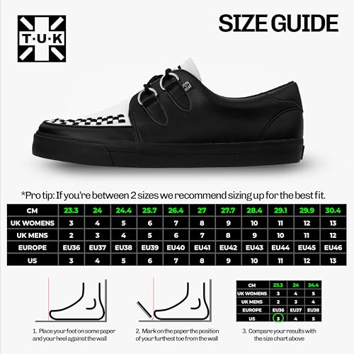 T.U.K. Leather Creeper Sneaker - Scarpe da Ginnastica da Uomo e da Donna - Colore Bianco e Nero - Stile Punk, Goth e Rocker in Pelle e Scarpe Stringate - Taglia EU46