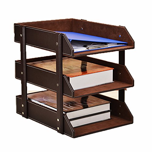 Leather Desk file lettera vassoi, 3 strati vassoio di legno per documenti, ufficio file rack organizer da scrivania portalibri Coffee 3 Tiers