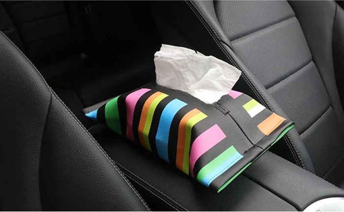 Leather Tissue Box Holder for Auto Styling for Cooper Checkered Rainbow Cartoon Tissue Bags for Min MI Car Stuff Car Accessories