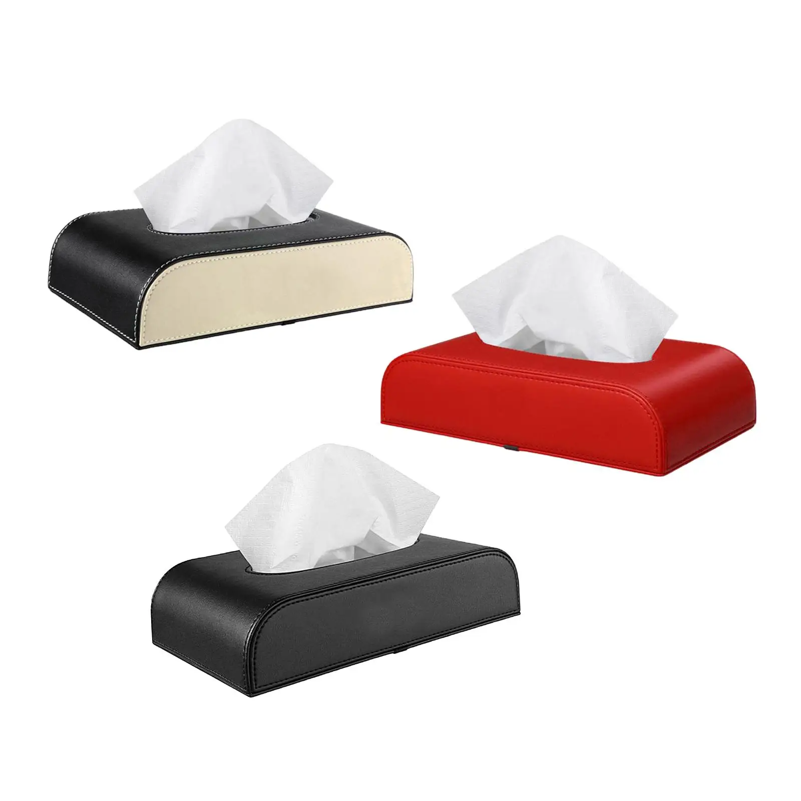 PU Leather Tissue Box Holder, Rectangular Napkin Holder Pumping Paper Case for Home Office Car Automotive Decoration