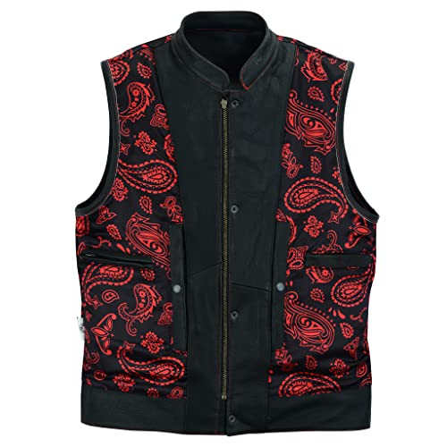 Leatherick Groove Club Gilet Pelle Uomo - Fodera In Raso Paisley Tradizionale Con Cuciture a Rossi (M50)