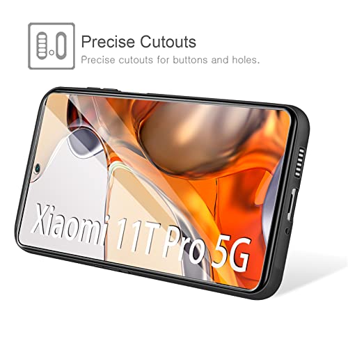LeathLux Cover Compatibile con Xiaomi 11T/ 11T Pro con 2 Pellicola Vetro Temperato, Morbido Silicone Protettivo Bumper TPU Gel Smartphone Custodia Case - Nero