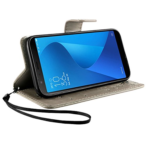 Leathlux Cover Zenfone Max Plus (M1) Custodia, Retro Design con Cinturino da Polso Magnetico Snap-on Internamente Silicone Case in Pelle Flip Cover per ASUS Zenfone Max Plus M1 ZB570TL 5.7" Grigio
