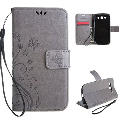 Leathlux Per Samsung I9301 Galaxy S3 Neo Grigio Custodia, Retro Fiore Modello Design Con Cinturino da Polso Magnetico Snap-on Book style Internamente Silicone TPU Custodie Case in pelle Protettiva Flip Cover Per Samsung I9301 Galaxy S III Neo