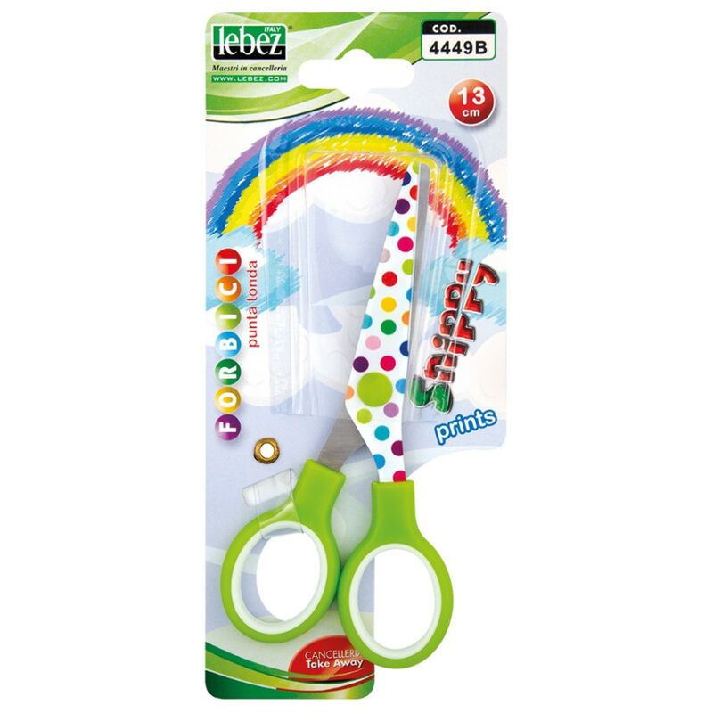 A punta tonda. Lama in acciaio inox stampata, impugnatura bicolore in plastica morbida, fantasia assortita. In blister.. cm 13. Prezzo inteso per: 12 BL