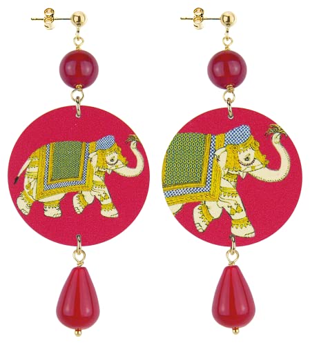 IN Lebole Collezione The Circle DOR43 Elefanti Orecchini da Donna in Ottone Pietra Rubino