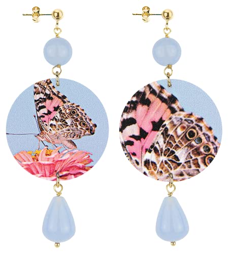 IN Lebole Collezione The Circle DOR69 Farfalla Orecchini da Donna in Ottone Pietra Celeste
