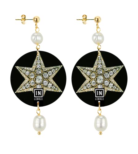 IN Lebole Collezione The Circle Piccoli Fondo Nero Stella Orecchini da Donna in Ottone Pietra Perla