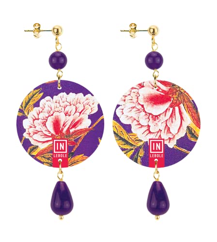 IN Lebole Collezione The Circle Piccoli Fondo Viola Fiore Bianco Orecchini da Donna in Ottone Pietra Viola