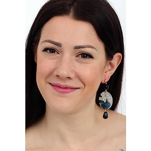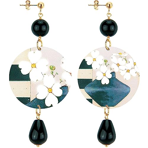 IN Lebole Collezione The Circle Riga Bianca e Nera Orecchini da Donna in Ottone Pietra Nera