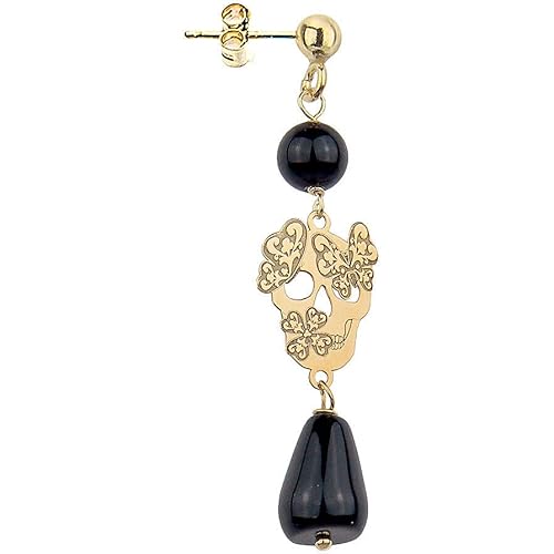 Lebole Gioielli Collezione Gotico Romantico GORSM Teschio Orecchino Singolo da Donna in Argento Pietra Nera