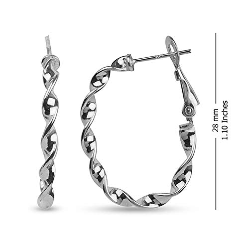 LeCalla Sterling Silver Jewelry Ovale Intrecciato Dimensioni Tubo Omega Torna Clutchless Orecchino ad Anello Media per Le Donne