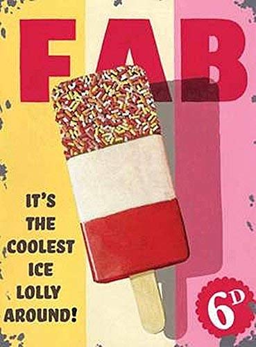 FAB Lecca lecca ghiaccio Cream - Cibo, Vecchio Retro Annuncio per shop, caffè, ghiaccio Cream pellegrini, pub, ristorante, casa e cucina Metallo/Targa Da Parete In Acciaio - 15 x 20 cm