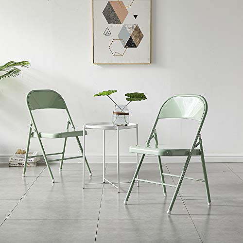 LeChamp - Sedia pieghevole salva spazio in acciaio forte, telaio in acciaio, sedia da campeggio, da scrivania, per ospiti, visitatori e per conferenze, 2 pezzi, colore verde