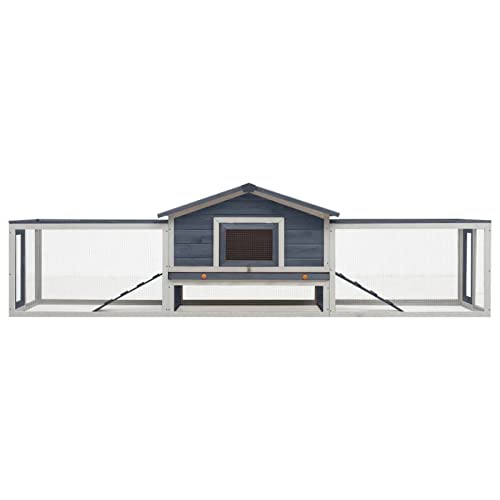 Lechnical Conigliera Conigliera per Esterni Conigliera all'Aperto Gabbia Animali Piccoli Gabbia Coniglio Gabbie Conigli Conigliera Grigia 310x70x87 cm in Legno Massello di Pino e Abete