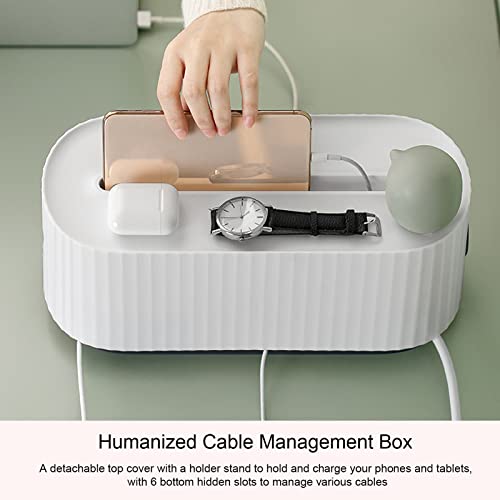 [Design umanizzato] Un coperchio superiore staccabile con un supporto per tenere e caricare telefoni e tablet, con 6 slot nascosti inferiori per gestire vari cavi.