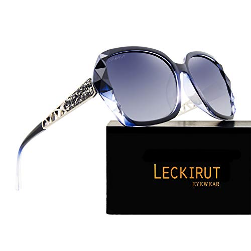LECKIRUT Donna Ombra Classico Oversize Polarizzati Occhiali da Sole 100% UV Protezione Occhiali Blu Montatura/Grigio Lente