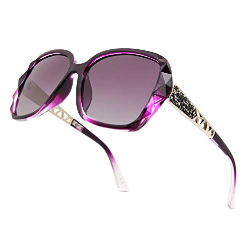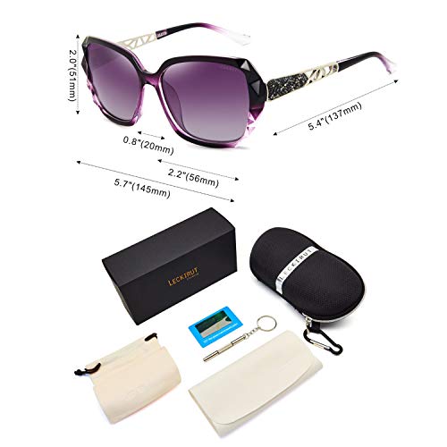 LECKIRUT Donna Ombra Classico Oversize Polarizzati Occhiali da Sole 100% UV Protezione Occhiali Viola Montatura/Viola Lente