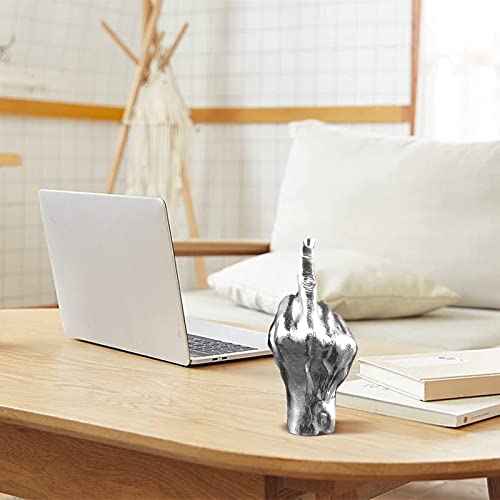 LECMACY Statue creative verticali per dito medio mano gesto scrivania, regali personalità per amici familiari, negozio, casa ufficio Playroo decorazione (argento-B)