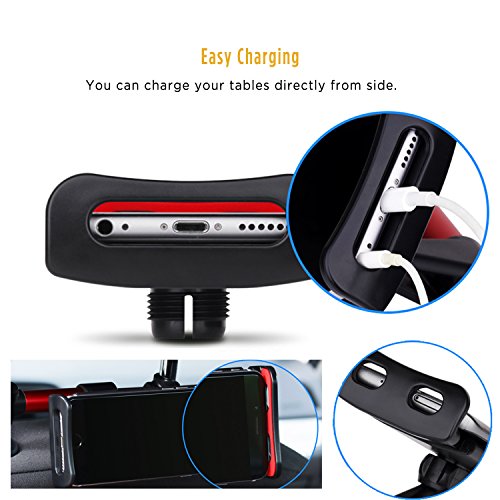 Angolo perfetto - Porta tablet da auto con multi-angolo 360 gradi di rotazione - Il rivestimento interno morbido della pinza può proteggere il suo cellulare/tablet da graffi e rigature - Proteggono il suo smartphone/tablet da un'eccessiva agitazione e vibrazione