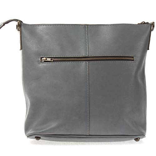 LECONI Borsa a tracolla da donna, borsa a tracolla per il tempo libero, da donna, con scomparto esterno, look vintage, semplice, moderna, in pelle, 36 x 32 x 10 cm, LE3067, Grigio/Blu - Vintage, Large