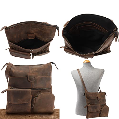LECONI Borsa a tracolla Pelle di bovina Borsa a spalla piccola Donna + Uomo Vintage Borsa di pelle 28x30x5cm LE3011