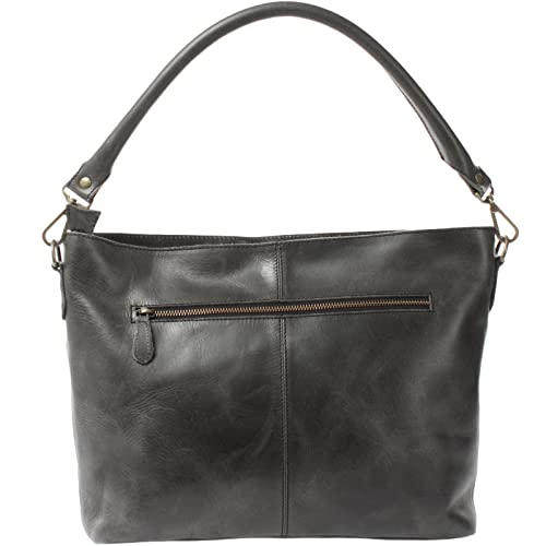 LECONI Borsa a tracolla Borsa di pelle Borsa delle signore in stile vintage Borsa in vera pelle naturale Donna Shopper grande Borsa a mano DIN A4 Borsa da donna 39x27x10cm grigio scuro LE0062-buf