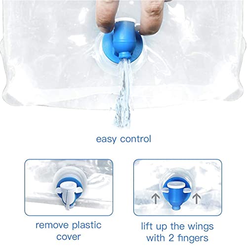 [Con rubinetto] Il rubinetto on/off del sacco d'acqua da campeggio è a prova di perdite, quindi non dovrai preoccuparti del problema di fuoriuscita dell'acqua dal rubinetto. Accendere il rubinetto, premere le orecchie blu su entrambi i lati del rubinetto verso l'alto e l'acqua scorre fuori dal rubinetto, il che molto pratico.