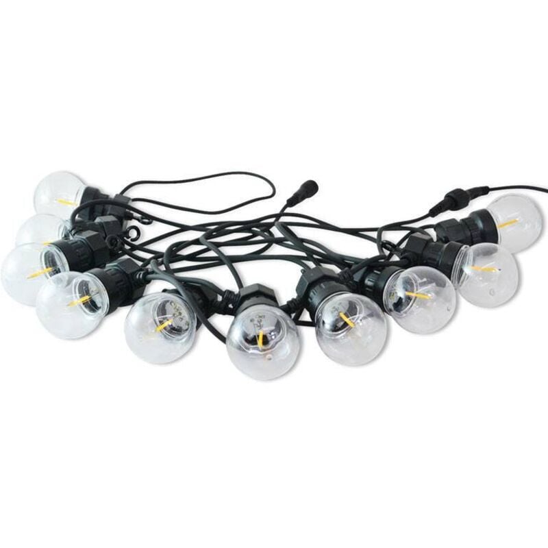 Ghirlanda a LED lunga 8 metri e con una temperatura di colore bianco caldo di 3000°K. Ghirlanda che forma una catena luminosa con 10 lampadine LED integrate. Con una potenza di 2W e un'intensità luminosa di 400 lumen. Per uso interno ed esterno con installazione facile e veloce. Grado di protezione IP44 e angolo di apertura del fascio luminoso di 360 gradi. Ghirlanda con cavo nero e cappuccio nero. Design compatto e integrato con 10 lampadine a filamento LED integrate. Può essere collegato a due stringhe continue di LED (bianco caldo). Cavo e presa neri. Lunghezza: 8 m 3 metri di cavo di collegamento inclusi. Illuminazione decorativa