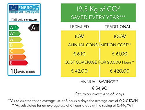 Risparmio annuo co2 12,5 kg (8 ore al giorno con un risparmio di 0,44 g / wh)