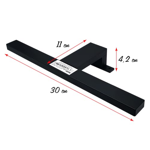 Leddy Living Lampada LED da Specchio Bagno 30 cm 5.2W 450LM 230V, Applique da Toilette, IP44 Classe II, Luce per Trucco o Illuminazione Armadio Faretto CRI>84 (NERO - Bianco Neutro 4000K)