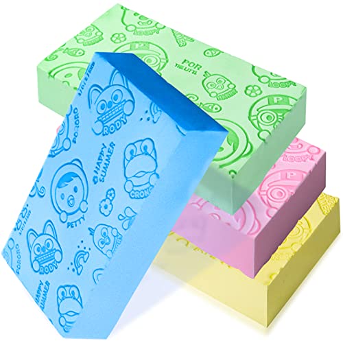 Ledeak 4 Pezzi Spugna Doccia Esfoliante, Spugne Esfolianti Corpo Riutilizzabile 3D Spugna Bagno Bambini Super Morbida, Spugna da Bagno Esfoliante per Adulti Bambini Doccia Donne Uomini