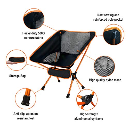 Leggero e portatile: la sedia pieghevole pesa solo 2,1 libbre (950 g). Sia la rete che i supporti possono essere piegati in piccoli pezzi, è possibile piegare la sedia da campeggio nella borsa da trasporto e le dimensioni dei pacchi fino a 36 cm x 13 cm, portatile per portarlo ovunque.