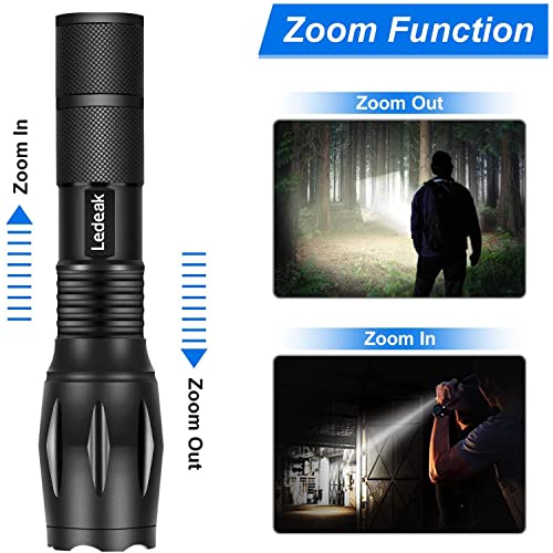 ★【Super Luminoso】: Dotato di perline XM-T6, torcia elettrica Ledeak con uscita 1000lm max, gamma di illuminazione max 1150ft.