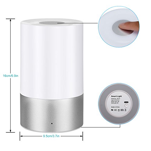 LEDemain Luce Notturna per Camera da Letto, Lampada da Comodino con 3 Livelli di Luminosità, LED Luce Atmosfera Multicolori Controllo da Contatto di 360° su Base in Alluminio