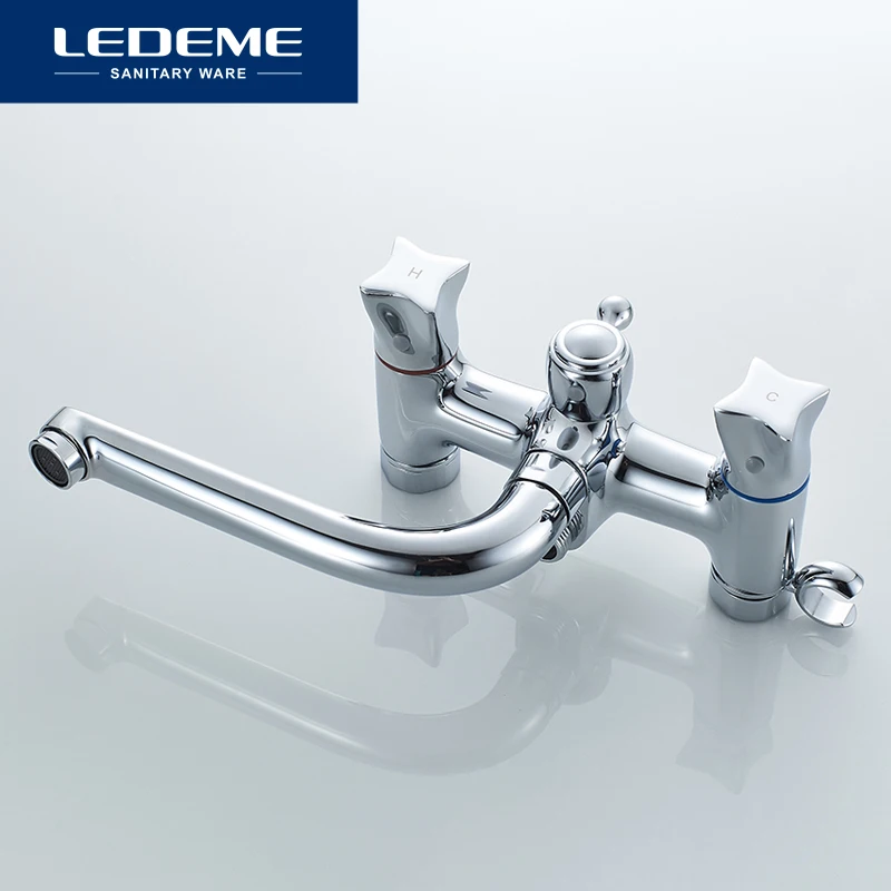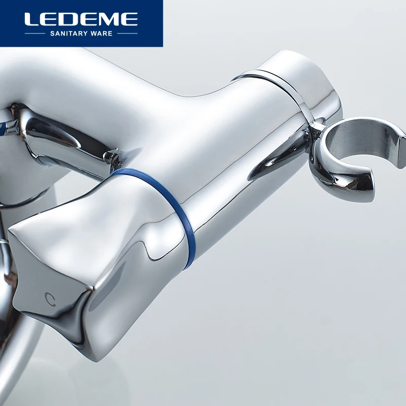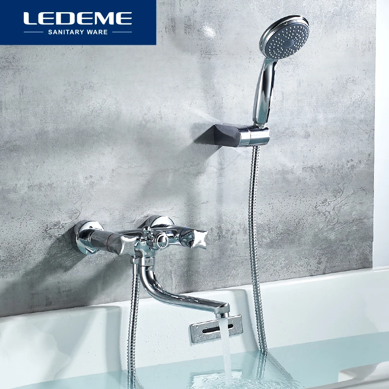 LEDEME Bathtub Faucet Wall Mounted Double Handle Polished Chrome Mixer Tap Bath Bathtub Shower Faucets With Hand Shower L3287